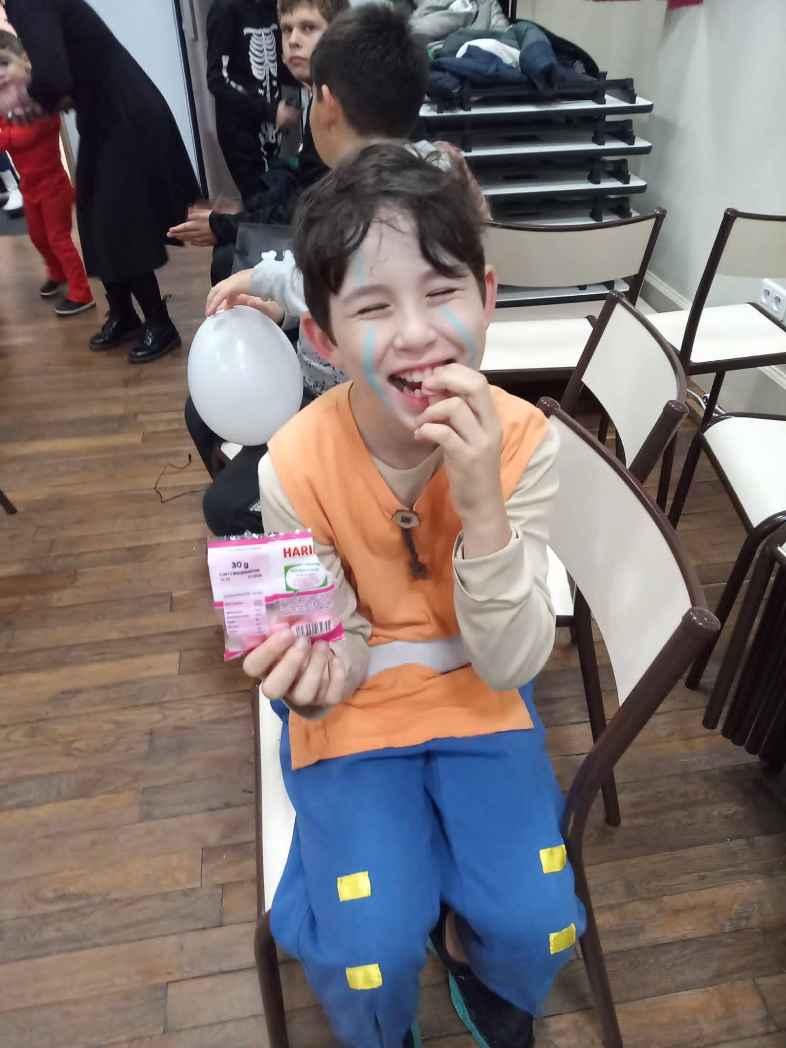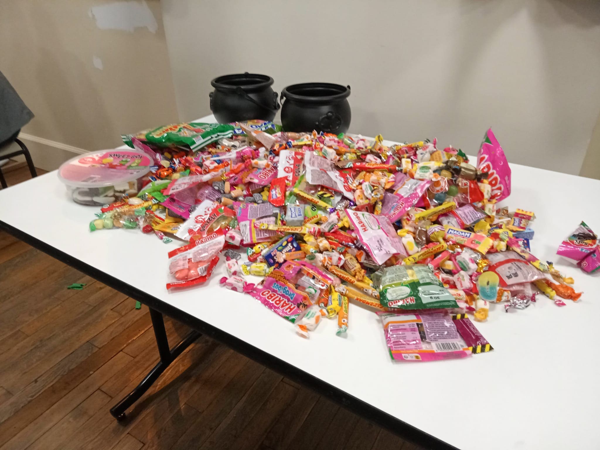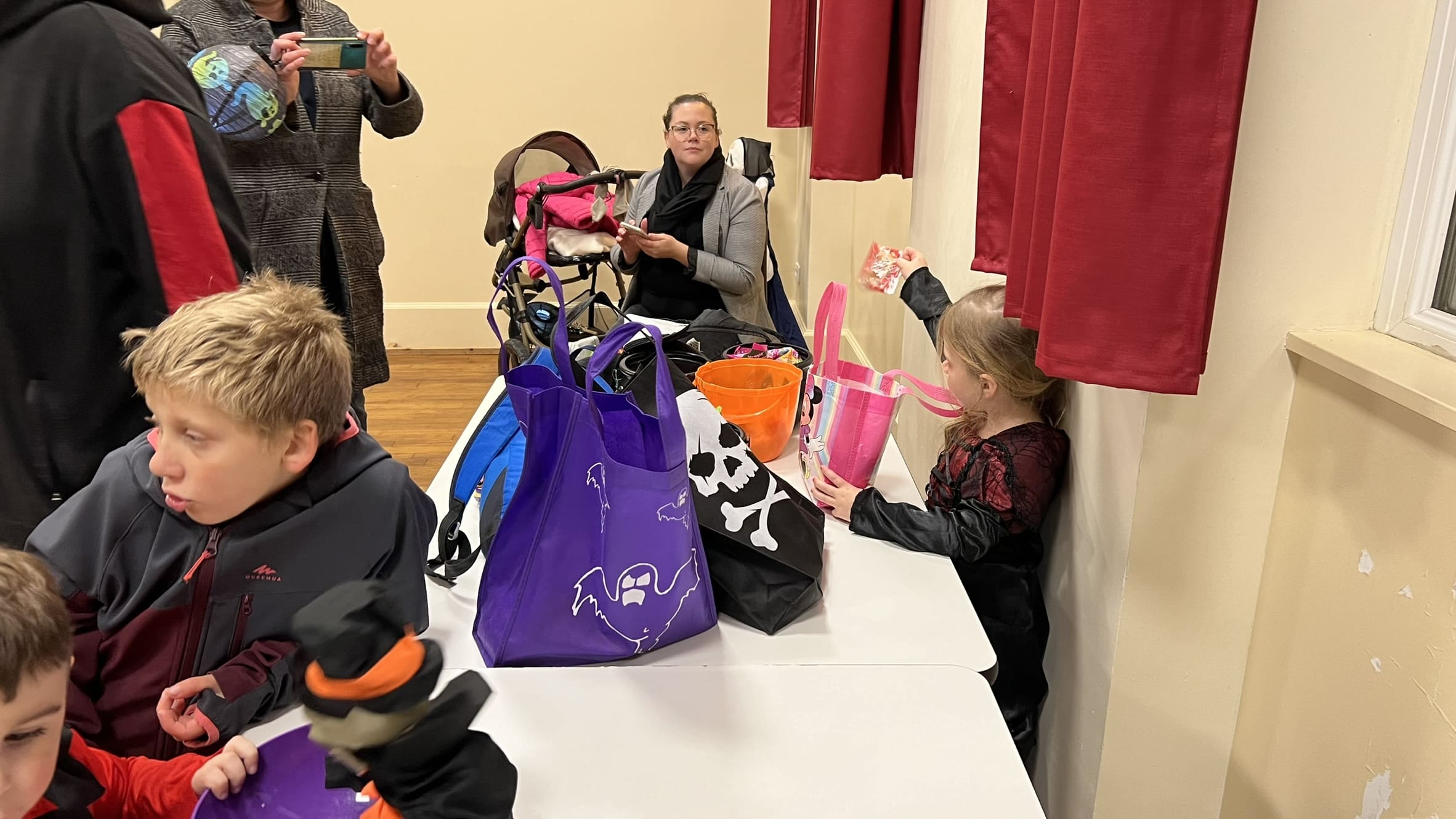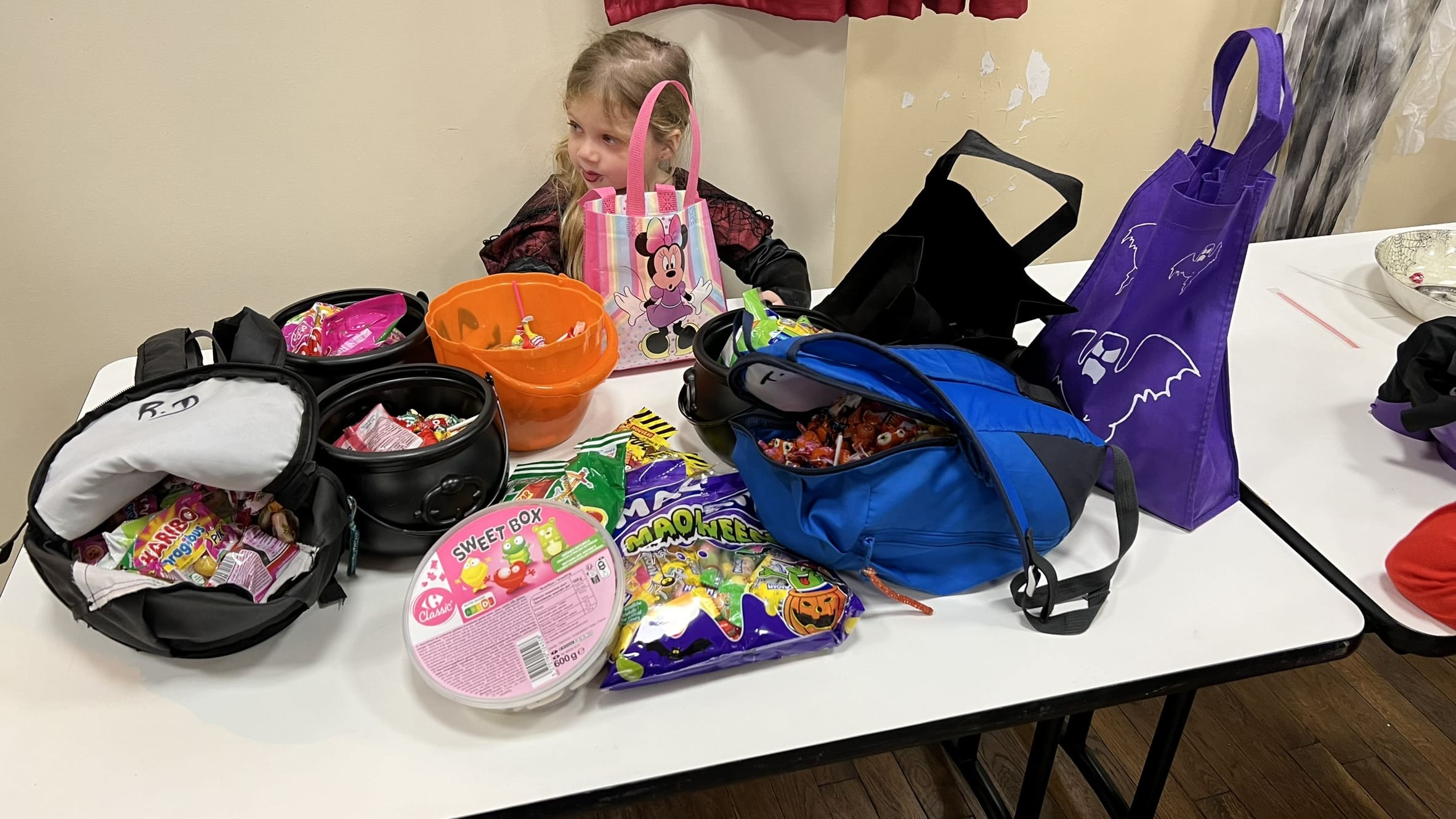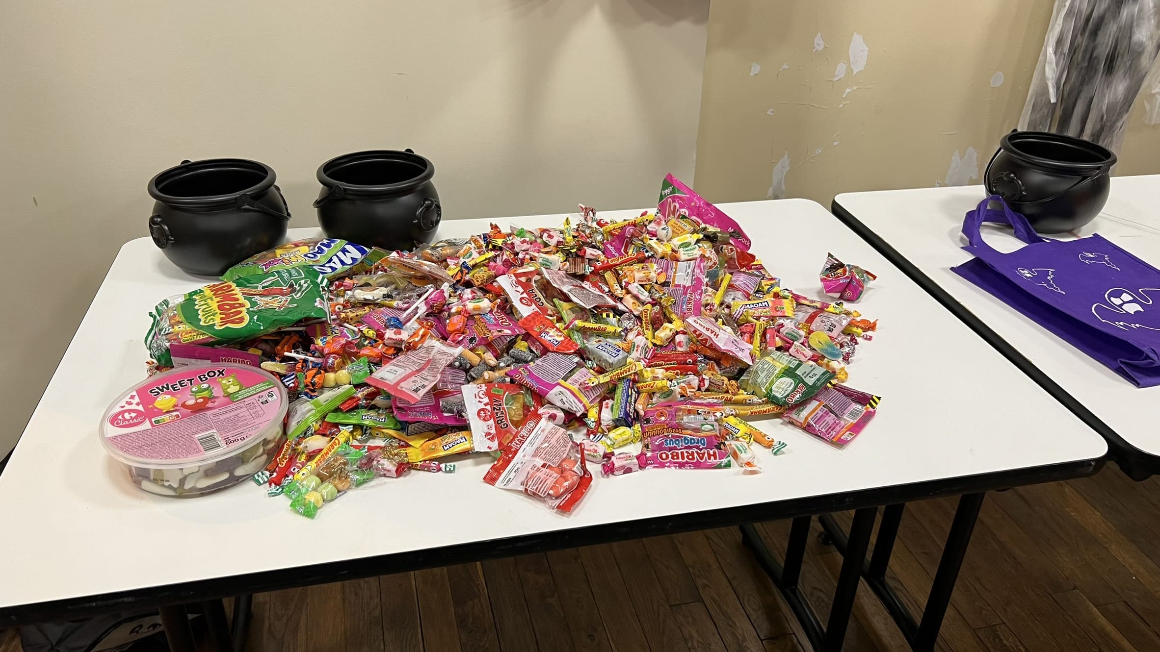 Partage des bonbons récoltés lors du défile d'Halloween.