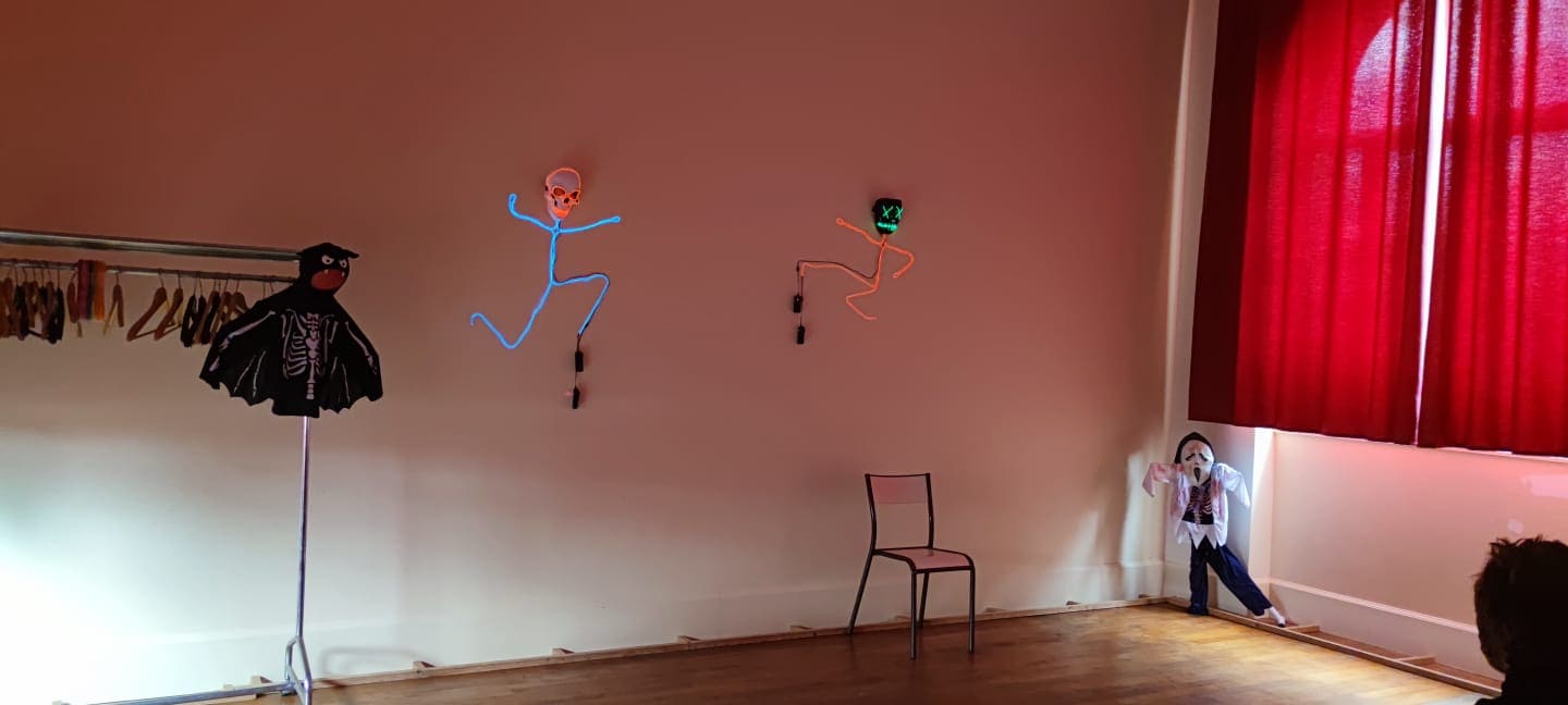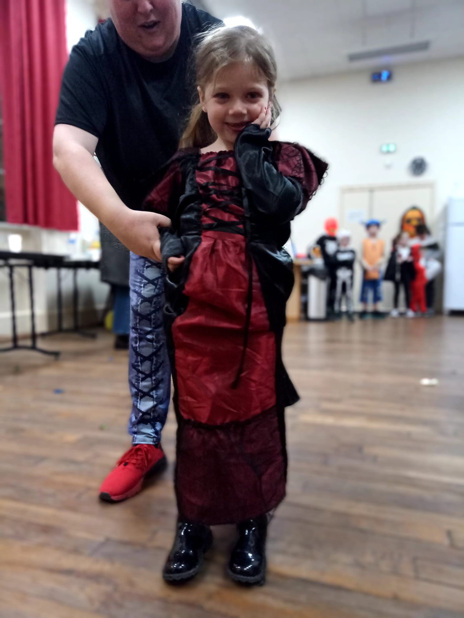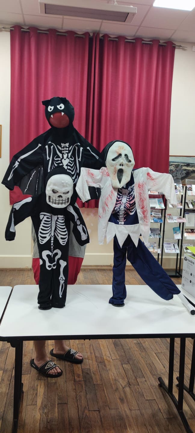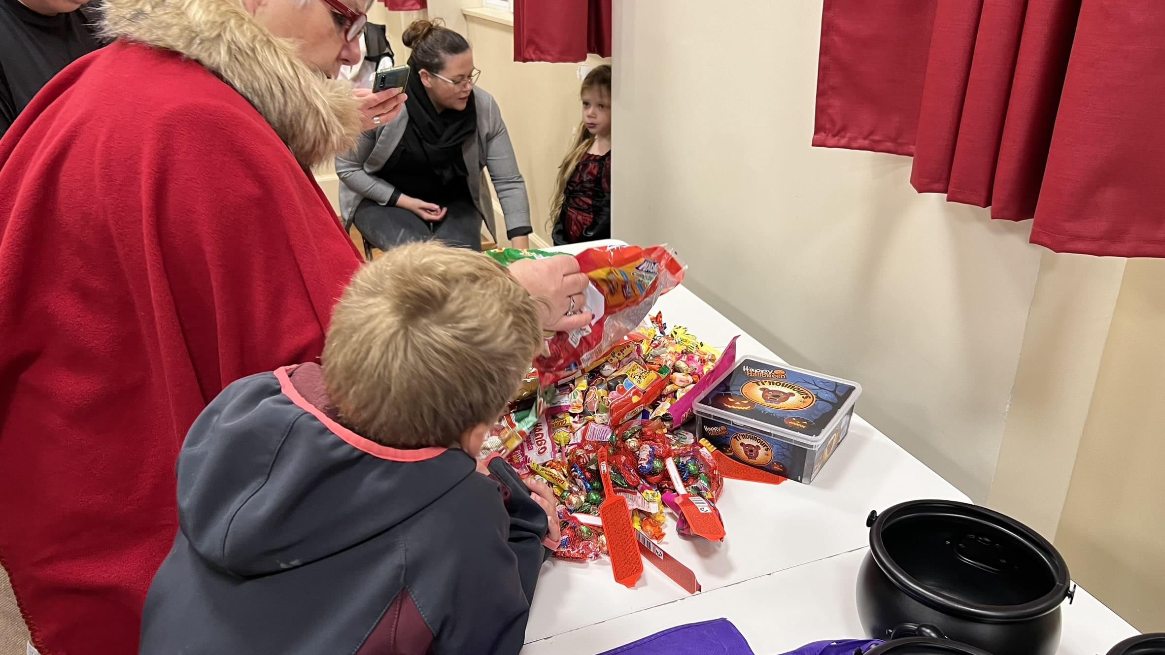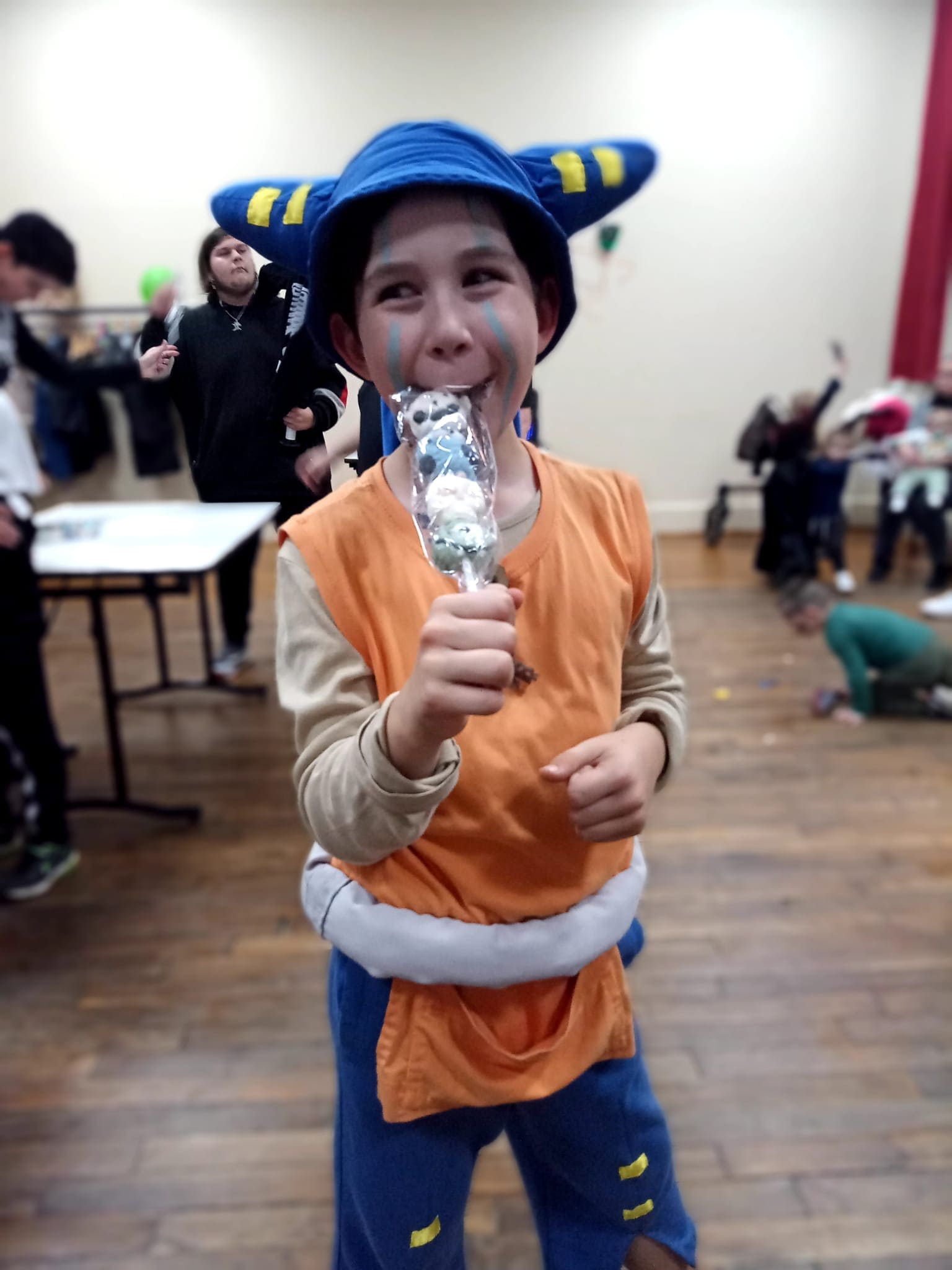 Partage des bonbons récoltés lors du défile d'Halloween.